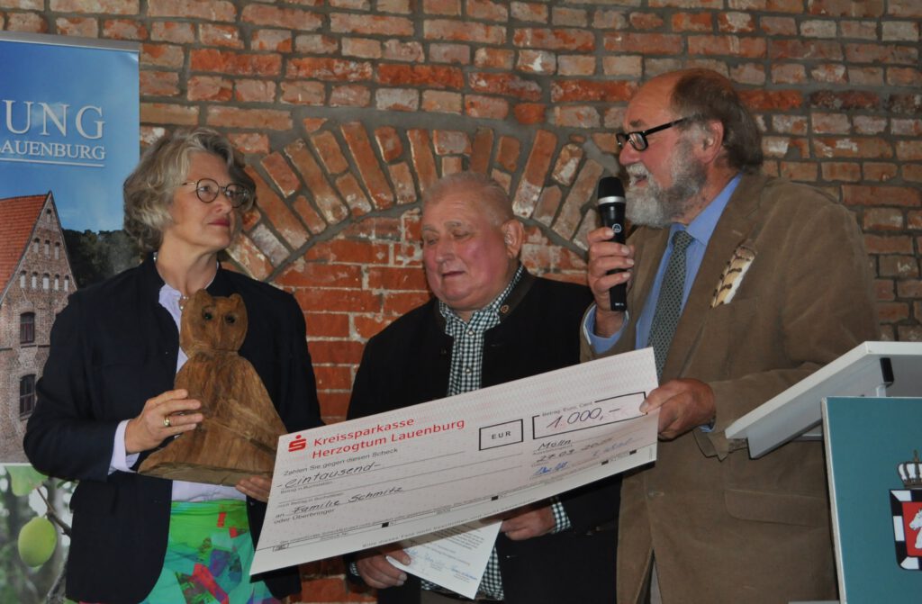 Barbara Kliesch und Klaus Schlie (Vizepräsidentin und Präsident der Stiftung Herzogtum Lauenburg) hatten gemeinsam mit Jury-Mitglied Thomas Neumann die schöne Aufgabe, die Auszeichnungen der Preisträgerinnen und Preisträger vorzunehmen. Fotos: Sabine Riege/Stiftung Herzogtum Lauenburg