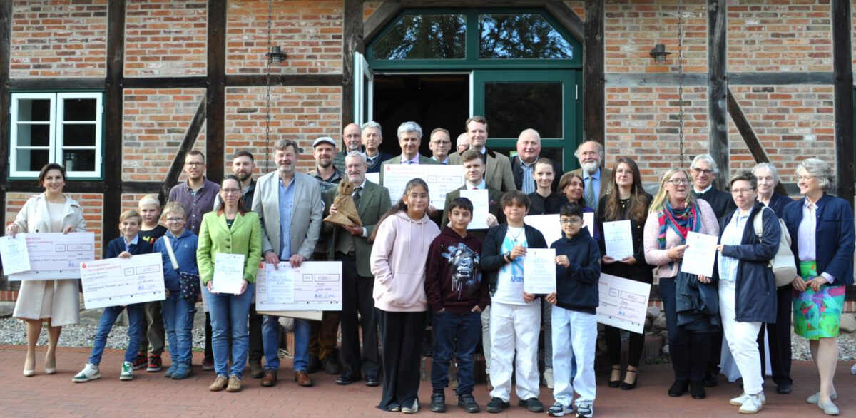 Segrahn – Seit 1984 wird von der Stiftung Herzogtum Lauenburg alle zwei Jahre der Blunck-Umweltpreis vergeben. Mit diesem wurde Ende September erneut umweltfreundliches Denken und Handeln von Einzelpersonen oder Gruppen in der Region ausgezeichnet und gefördert. Zuletzt erhielt 2023 der Biologe und Naturschützer Prof. Dr. Carsten Niemitz aus Mölln diese Auszeichnung. In diesem Jahr wurde in der Veranstaltungsscheune “Viehhaus” des Gutshofes Segrahn inmitten des Naturparks Lauenburgische Seen gefeiert und die Familie Schmitz durfte sich über die Auszeichnung ihres Projektes “Renaturierung von Feuchtgebieten im Eichhorst” mit dem Blunck-Umweltpreis freuen. Seit fast 100 Jahren pflegt die Eigentümerfamilie Schmitz den großen Wald Eichhorst in Dargow am Schaalsee. 2024/25 hat sie mit Hilfe ihres Försters und der Carl-Albrecht v. Treuenfels Stiftung für Feuchtgebiete Waldmoore und Brüche renaturiert und damit einen bedeutenden Beitrag für den Klima- und Artenschutz geleistet.