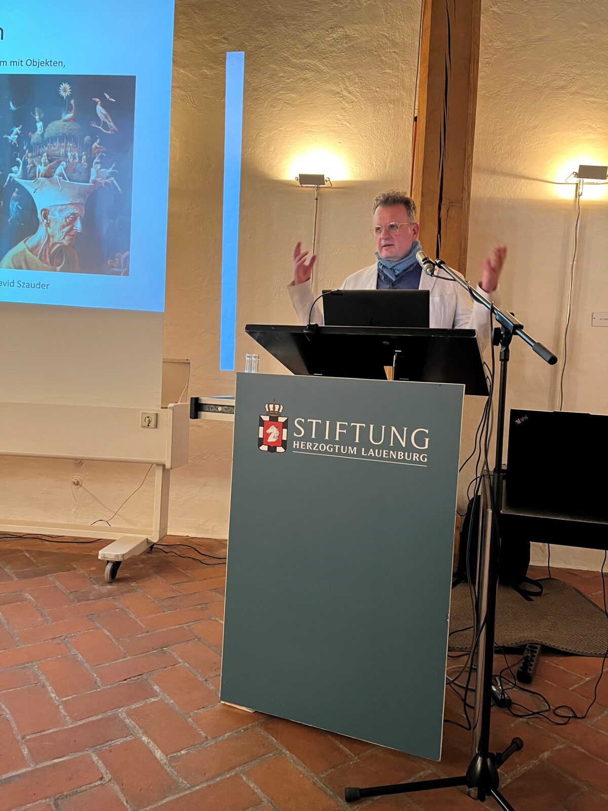 Mölln – „Künstliche und wirkliche Intelligenz – Wie funktioniert Kreativität?“ Zu dieser Fragestellung hielt Prof. Dr. Rolf Bader am 11. Oktober 2024 im Stadthauptmannshof einen kurzweiligen Vortrag im Rahmen der Reihe zur Künstlichen Intelligenz (KI). Gut 40 Besucherinnen und Besucher nahmen an der Veranstaltung teil und diskutierten im Nachgang angeregt mit dem Referenten. Fazit des Referenten: „Wir müssen die KI verstehen, dann kann sie zum Nutzen der Menschheit werden.“ Antje Ladiges-Specht, die die Veranstaltung maßgeblich organisiert hat, versprach, dem Wunsch des Publikums zu folgen, und die Reihe zur Künstlichen Intelligenz im nächsten Jahr fortzusetzen. Die Termine werden selbstverständlich wieder rechtzeitig über verschiedene Kanäle bekanntgegeben. Folgen Sie der Stiftung daher auch gerne auf Instagram oder Facebook, um keine der Veranstaltung zu verpassen!